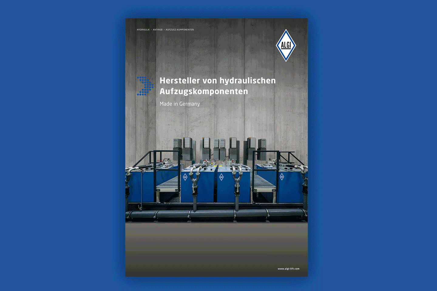 ALGI produziert seit mehr als 60 Jahren hydraulische Antriebe für den nationalen und internationalen Aufzugsmarkt. Als Hersteller von hydraulischen Aufzugskomponenten umfasst das Produktportfolio Antriebe, Tragrahmen und Kabinen für Personen-, Lasten- und Autoaufzüge. siebendesign ist verantwortlich für sämtliche Produktblätter und Broschüren inkl. Bildretusche und Bearbeitung.